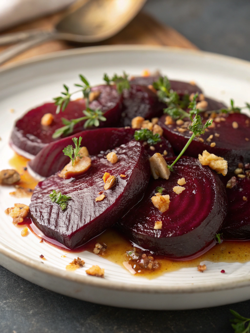 For an elevated presentation, serve chilled atop a bed of arugula with crumbled goat cheese and toasted walnuts. This makes for an impressive salad course that highlights the beets’ natural sweetness.