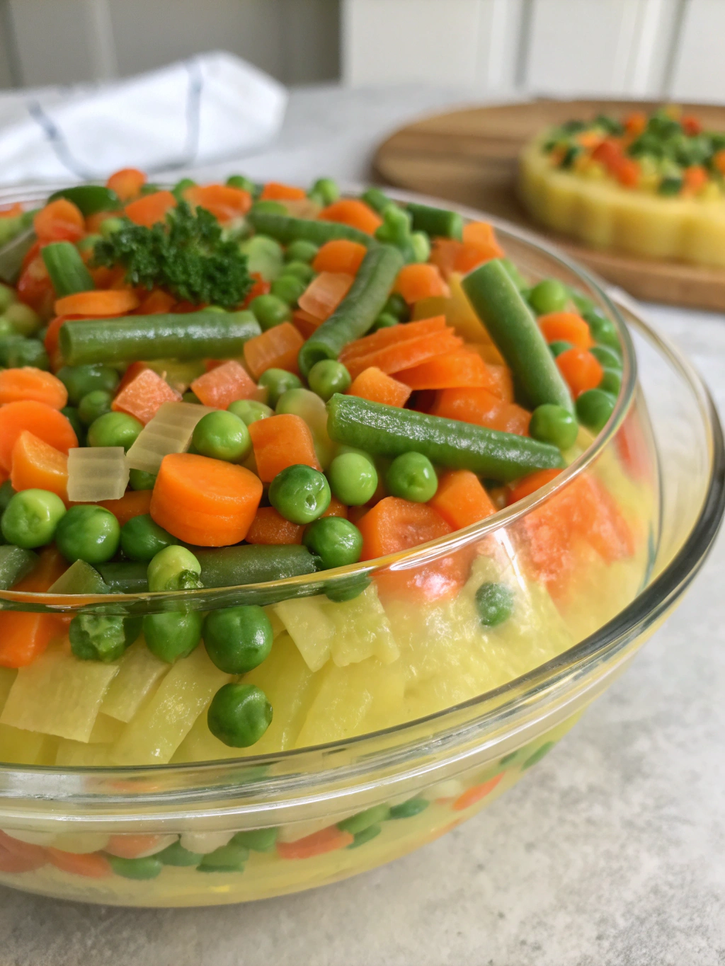 This happens when the gelatin mixture hasn’t thickened enough before adding vegetables. Always wait until the mixture coats the back of a spoon before incorporating vegetables.