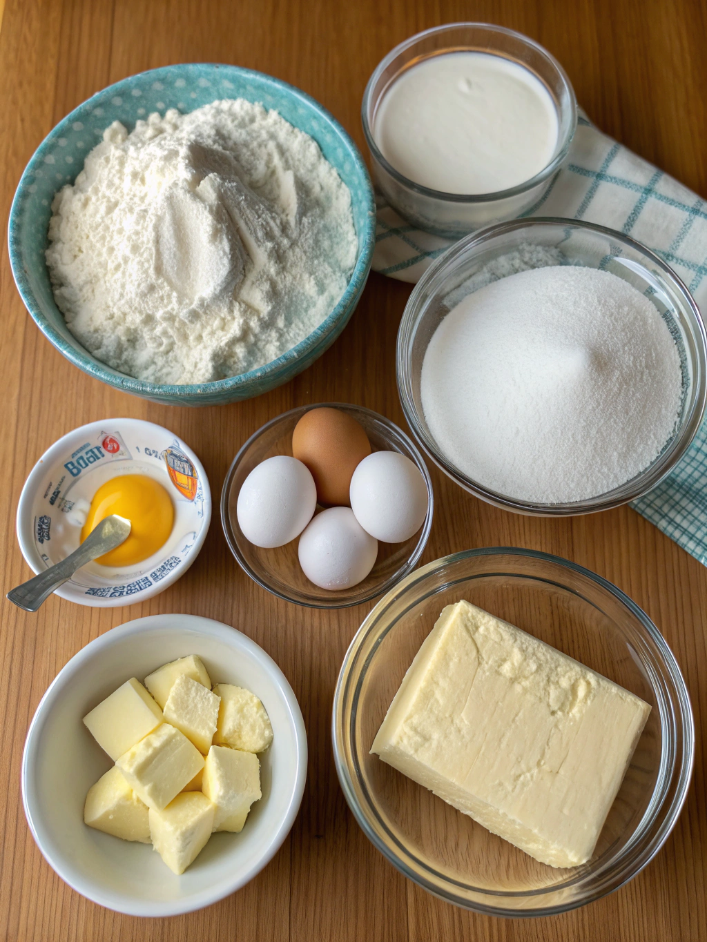 For this divine Classic Sour Cream Pound Cake (Melt-In-Your-Mouth Texture!), you’ll need: