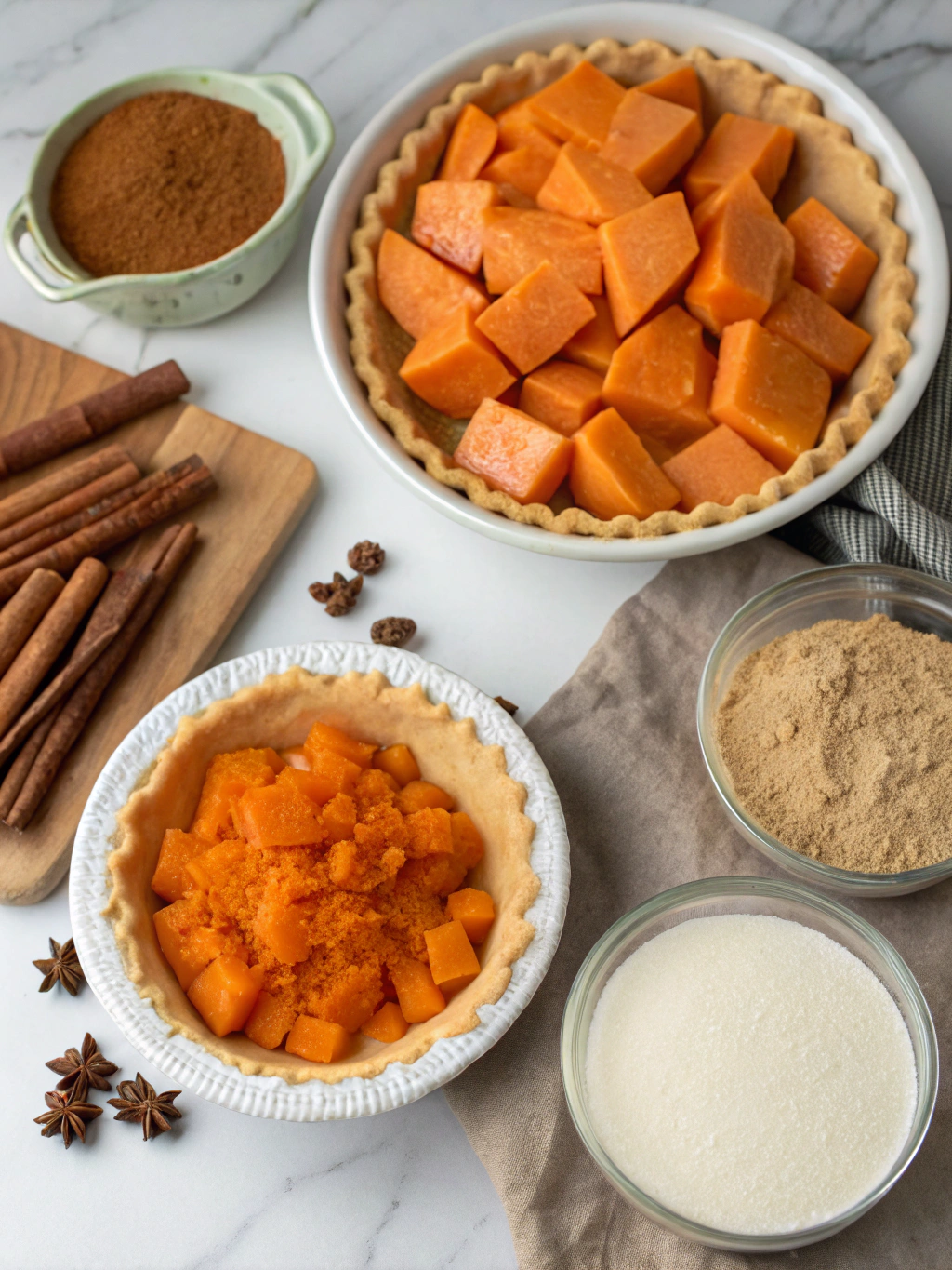 - Cooking time: 1 hour 15 minutes (includes sweet potato roasting and pie baking)