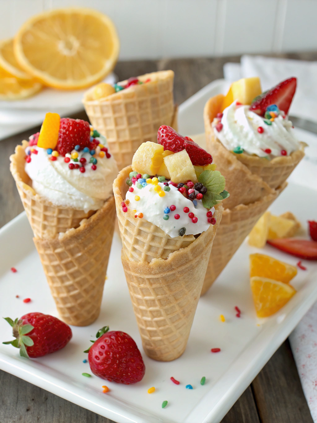 - For special occasions, arrange cones in a circular pattern around a central cake for a unique dessert centerpiece