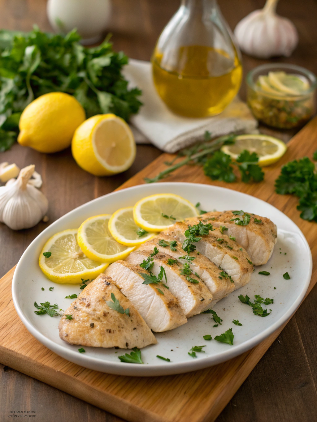 Reduce heat to low and whisk in the cold butter cubes one at a time until the sauce is silky and slightly thickened. Return the chicken to the skillet, spooning the sauce over the top. Garnish with fresh parsley and lemon slices before serving your Divine Lemon Chicken Breasts (Restaurant-Quality at Home!).
