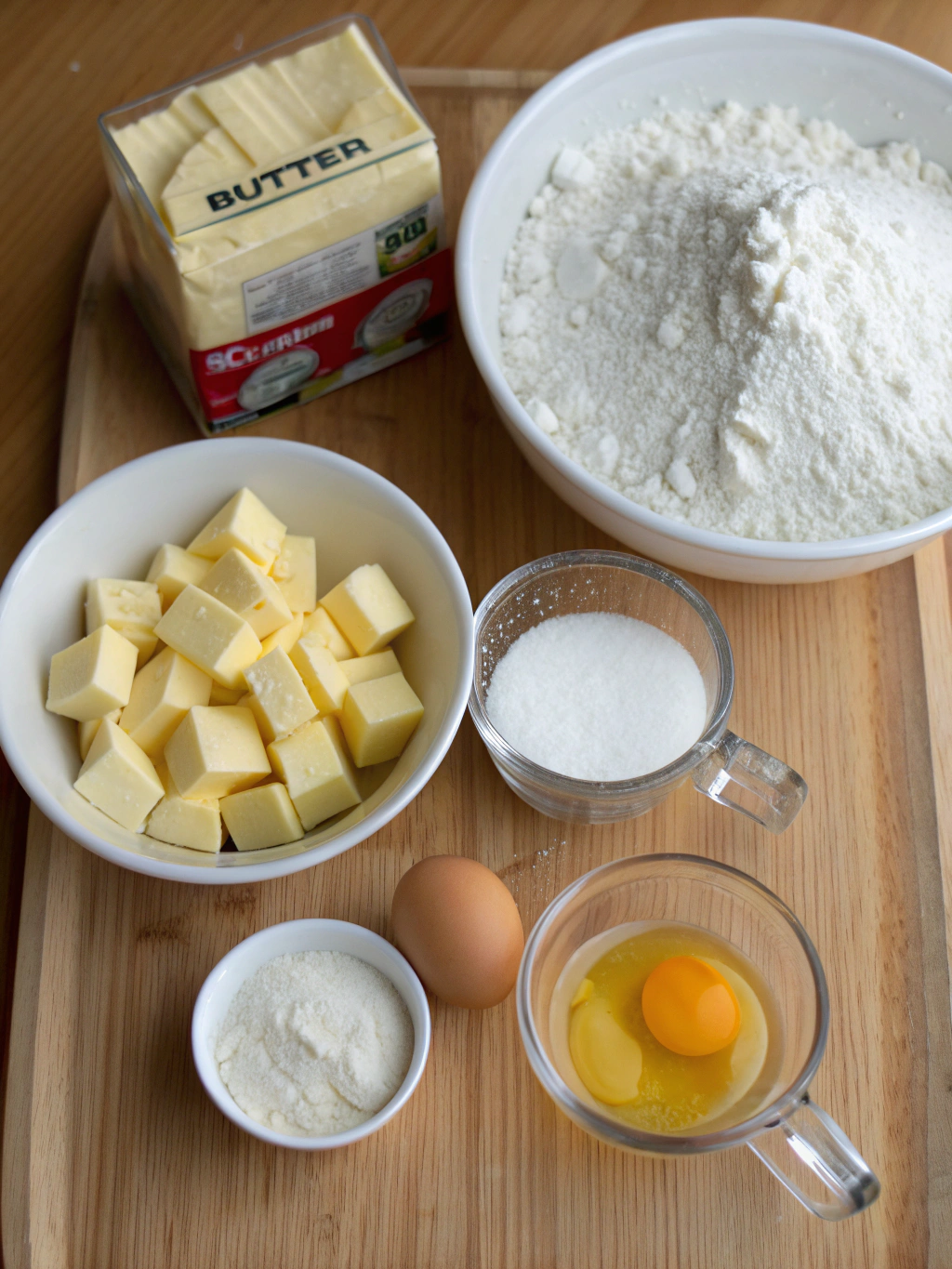 • 1 cup (230g) very cold unsalted butter, cut into ½-inch cubes (European-style butter with higher fat content creates exceptional flakiness)