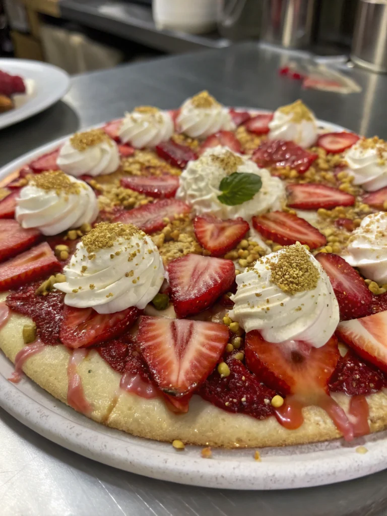 🍓 Discover this show-stopping strawberry dessert pizza that combines a buttery cookie crust with velvety cream cheese frosting and juicy fresh berries!