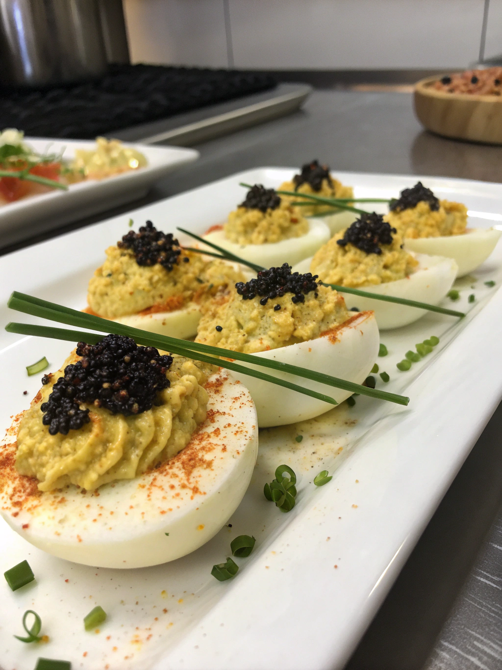 Sprinkle with paprika for traditional color and a hint of smoky flavor. Add your chosen gourmet toppings—a small piece of crispy bacon, a sliver of smoked salmon, or a few capers can transform these from excellent to extraordinary. Chill for at least 30 minutes before serving to allow flavors to meld.