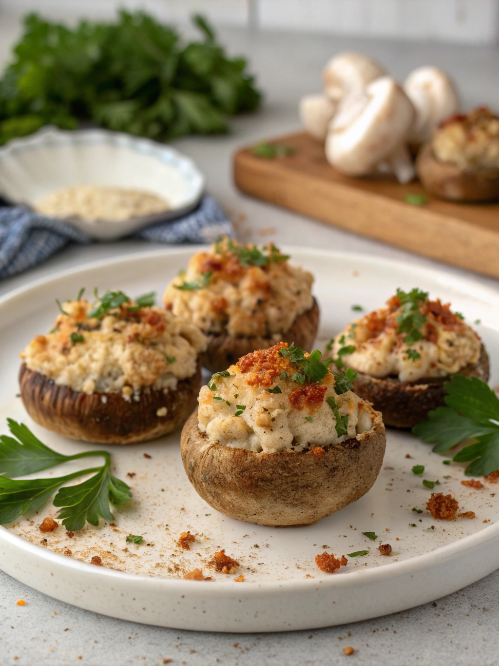 • Freezing option: Freeze unbaked stuffed mushrooms on a baking sheet until solid, then transfer to freezer bags for up to 1 month.