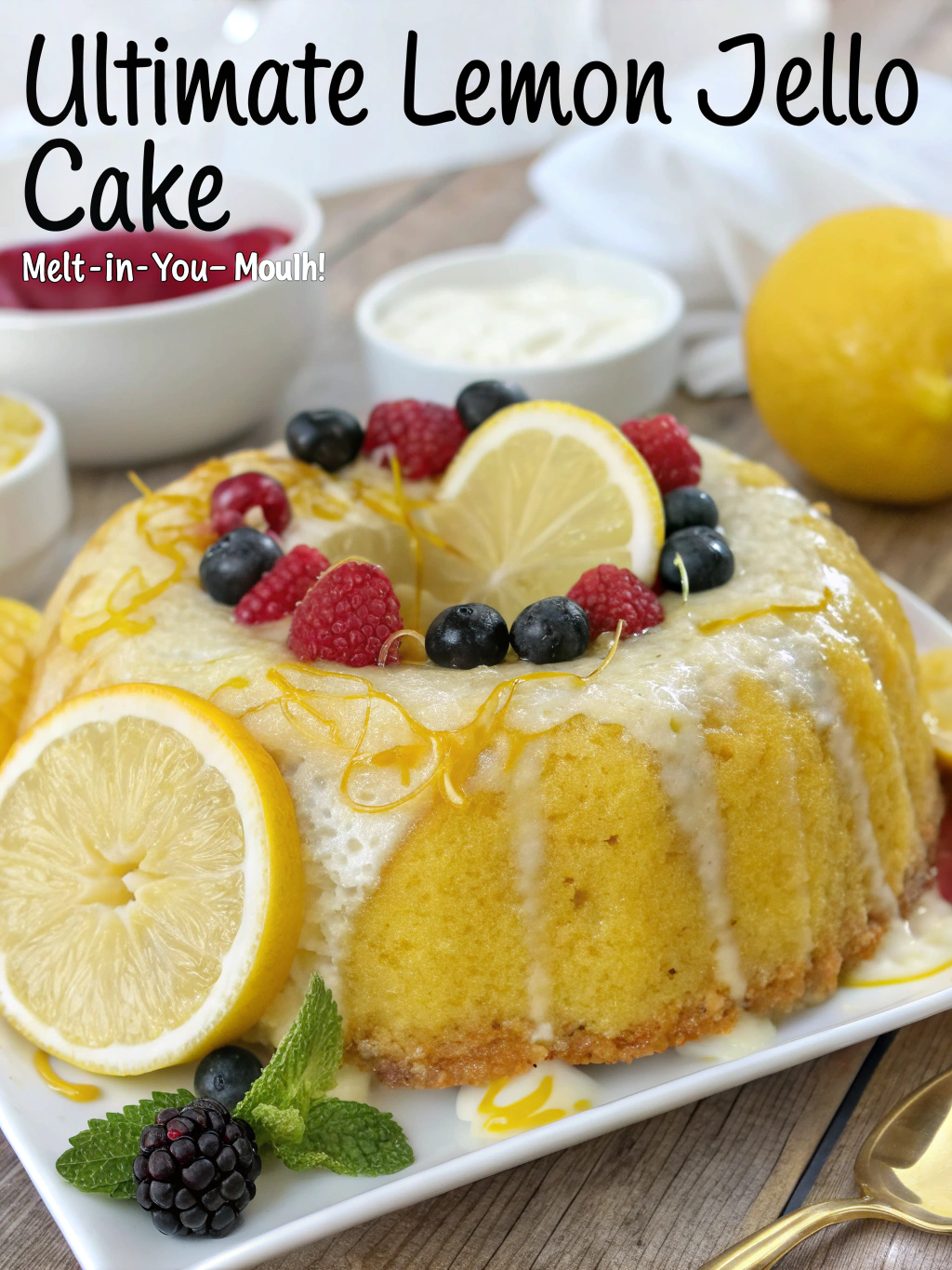 The Ultimate Lemon Jello Cake with Citrus Glaze (Melt-in-Your-Mouth!) represents the perfect intersection of convenience and extraordinary flavor. The secret inclusion of lemon jello transforms an ordinary cake mix into a bakery-worthy dessert that consistently impresses guests. The bright, tangy notes balanced against the sweet, moist crumb create a sensory experience that’s ideal for any season. Whether you follow the recipe exactly or experiment with the healthier alternatives, this moist citrus dessert delivers reliable results that will quickly earn a permanent place in your recipe collection. Ready to brighten your day with vibrant lemon flavor? Give this recipe a try and share your experience in the comments below – we’d love to see how you served this sunshine-infused treat!